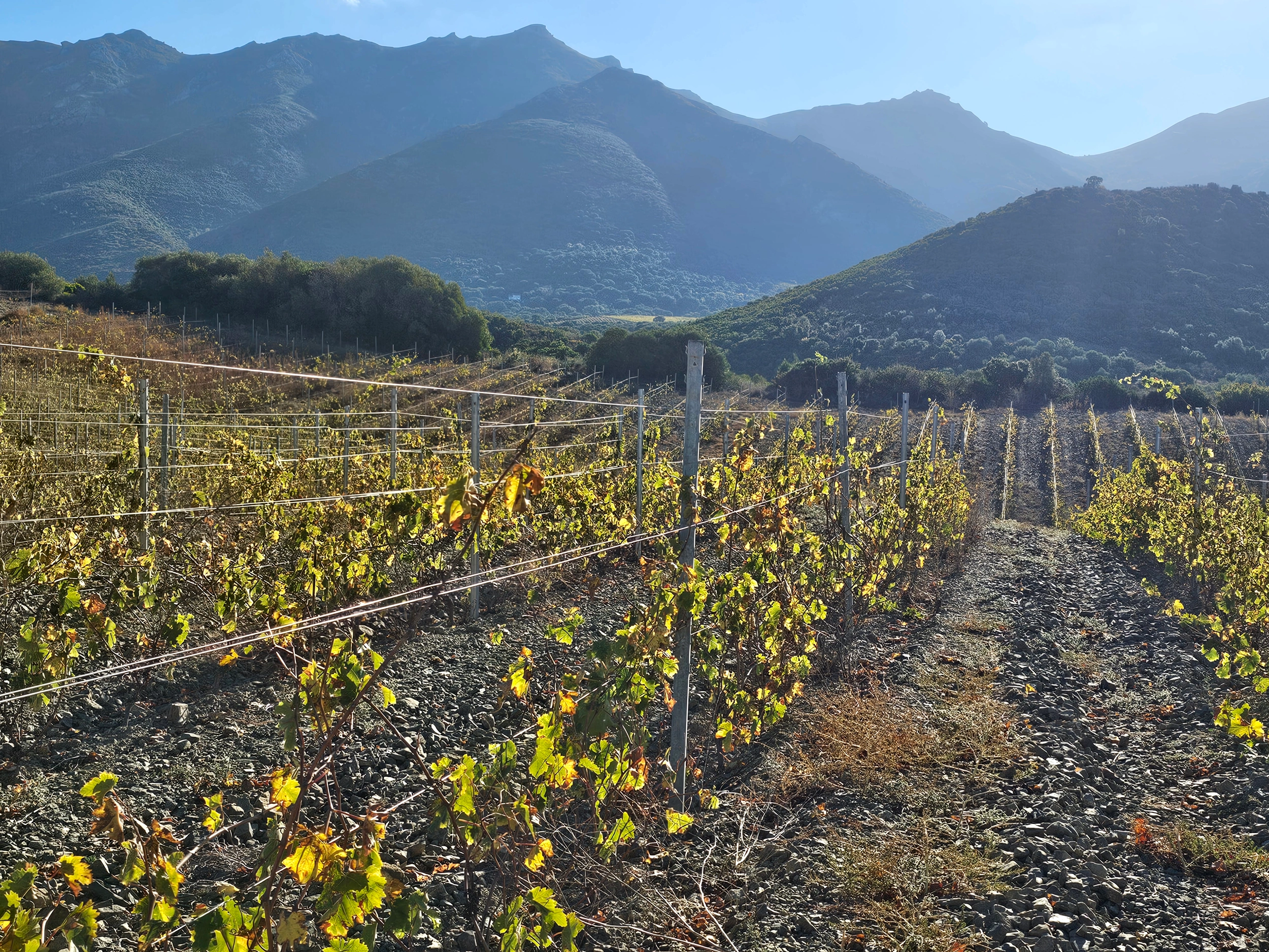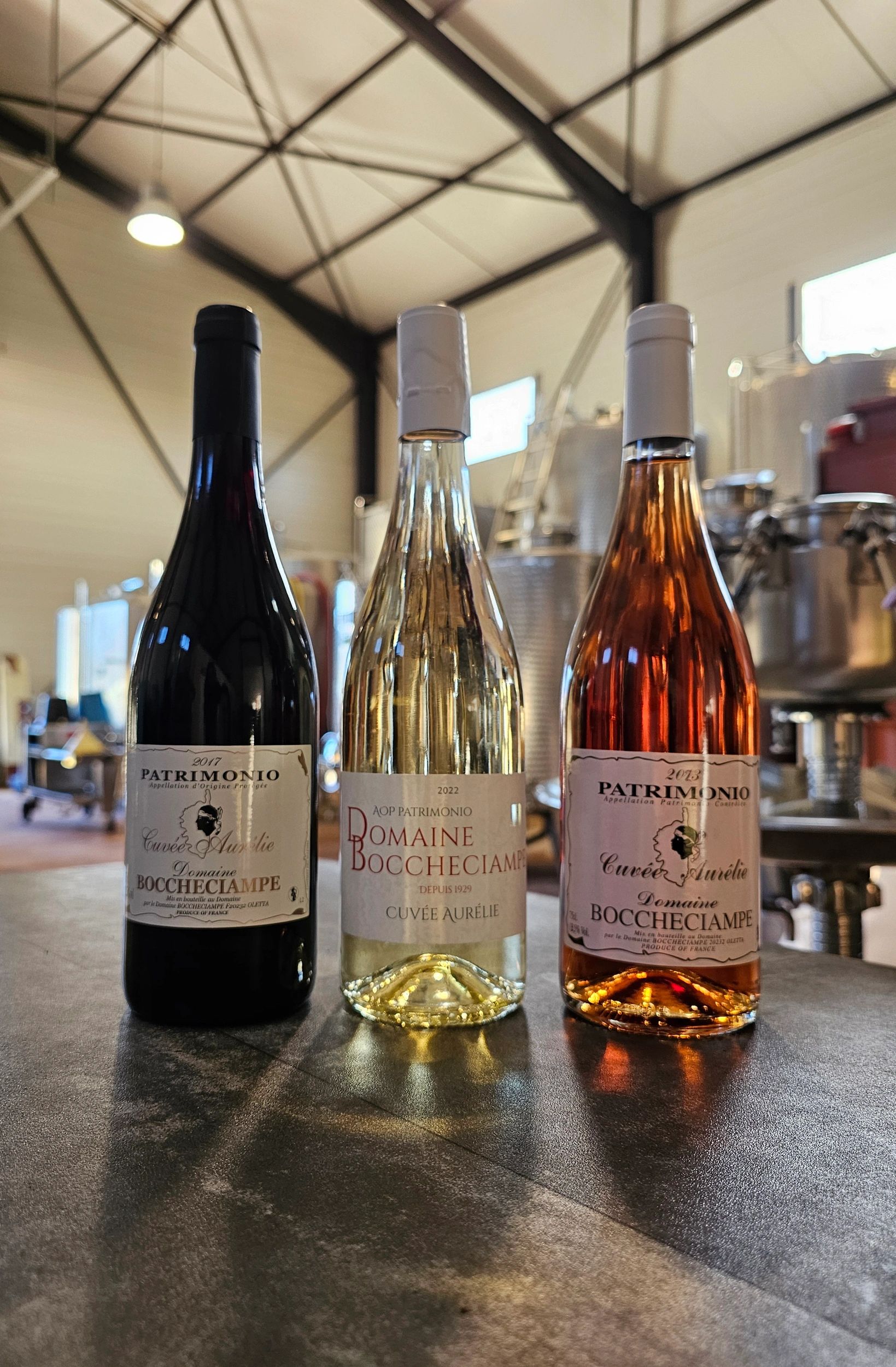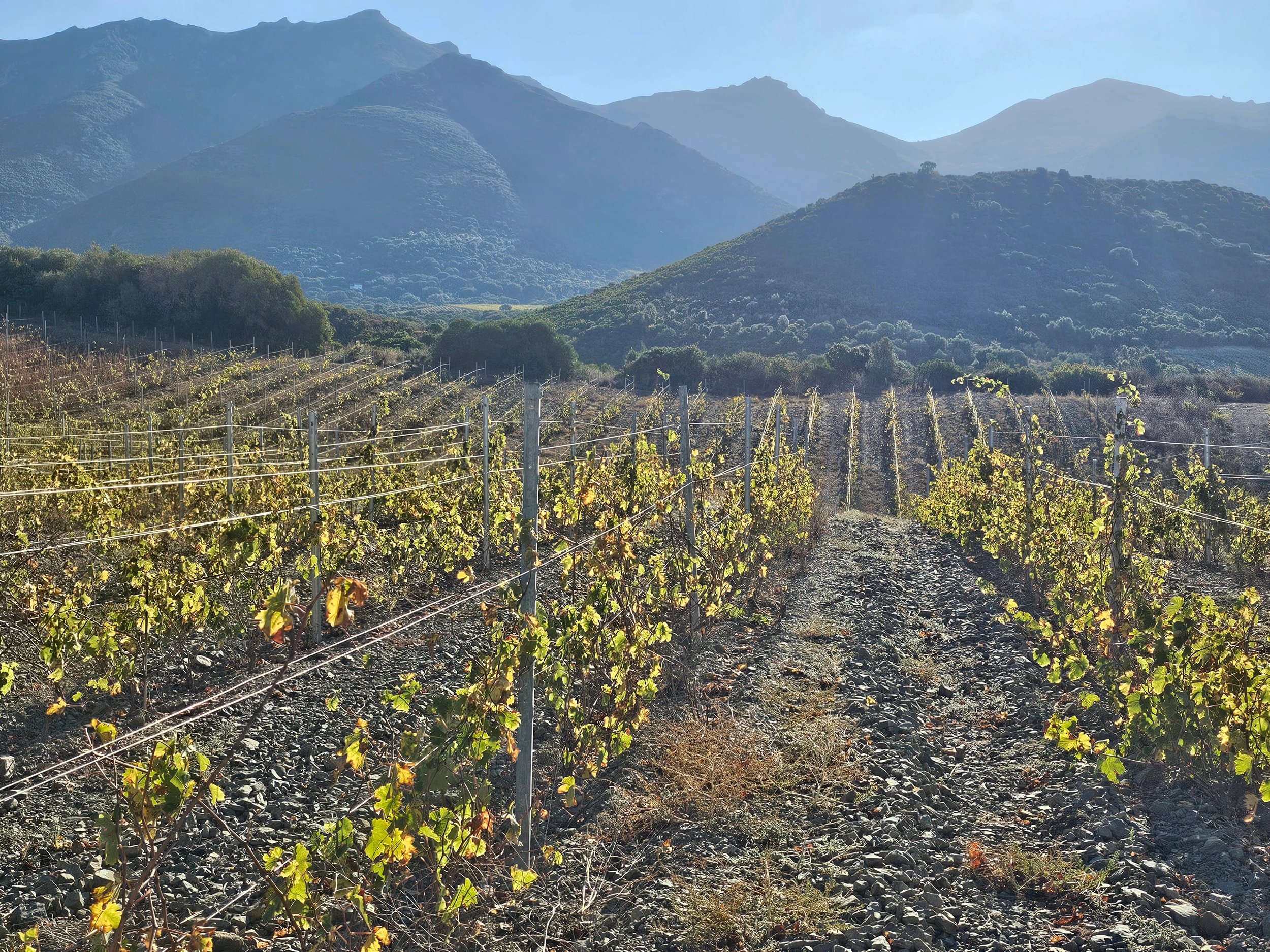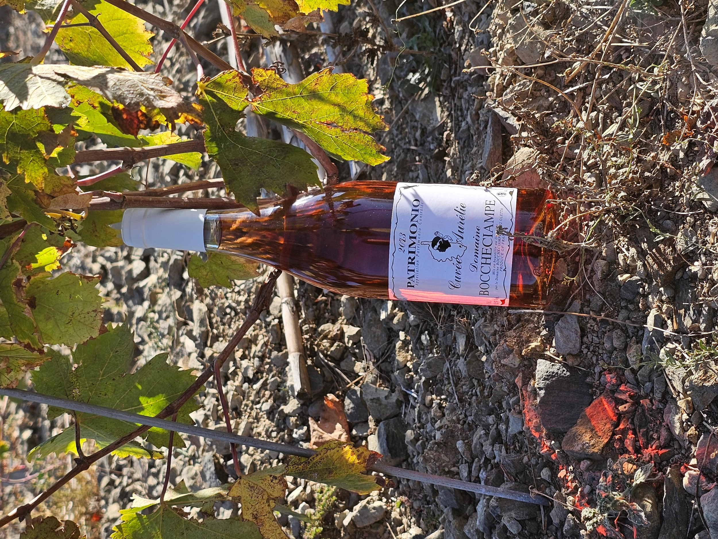 Les 7 hectares du Domaine de Boccheciampe s'enracinent dans l'appellation Patrimonio, seule AOP de Haute-Corse où le sol argilo-calcaire enrichi de schistes transmet aux vignes cette minéralité distinctive. Sur ce terroir d'exception, le Niellucciu règne en maître parmi les rouges, apportant structure et profondeur tannique. Le Grenache l'accompagne, ajoutant rondeur et notes fruitées. Le Vermentinu, cépage blanc emblématique de l'île, transcrit dans le verre la tension minérale du calcaire.