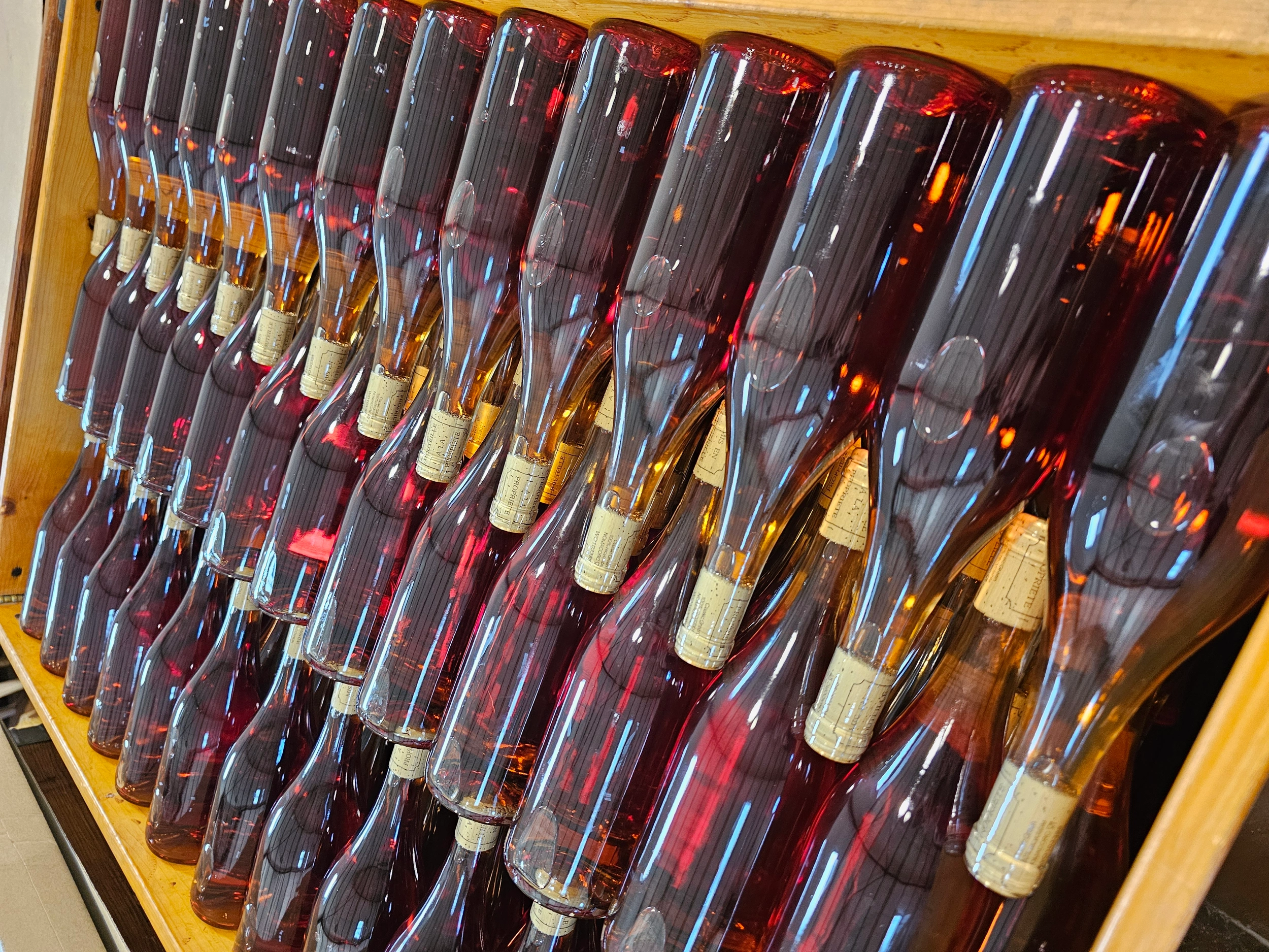 Dans la fraîcheur du chai mûrissent les trois expressions du terroir, nées de l'alliance entre Grenache, Niellucciu et Vermentinu. Le Rouge déploie sa structure tannique avec des notes de cassis et de cerise griotte, compagnon naturel des fromages affinés et des daubes mijotées qui font la fierté de la gastronomie insulaire. Le Rosé, dominé par des arômes de framboise, capture la vivacité méditerranéenne dans un éclat fruité qui accompagne charcuterie corse et grillades estivales. Quant au Blanc, élaboré à partir du Vermentinu, il révèle des notes de banane et de pomme, dialogue parfait avec les poissons grillés et les fromages de chèvre.